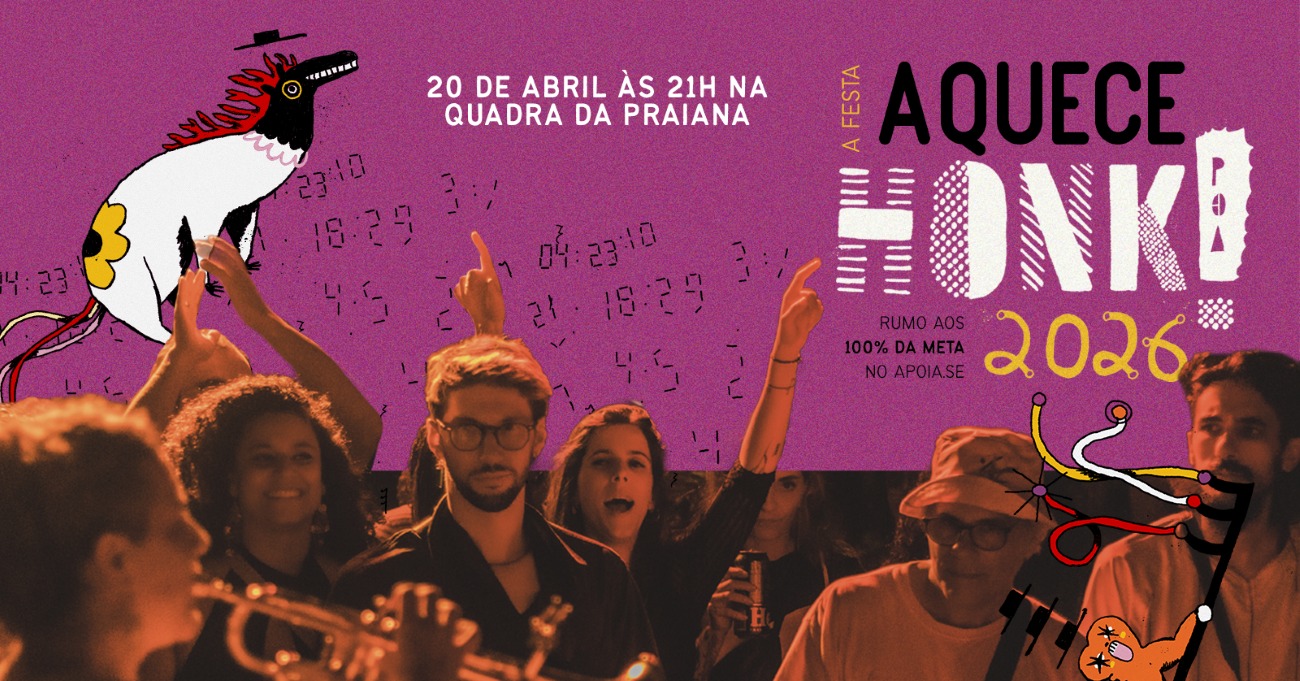 Dia 20 de abril tem AQUECE Honk! 2026, uma festa pra celebrar e dar o último empurrão rumo aos 100% da meta do financiamento coletivo, que encerra no dia 19/04! Porque o HONK! só acontece assim: quando muita gente chega junto pra colaborar (e se divertir, né?)