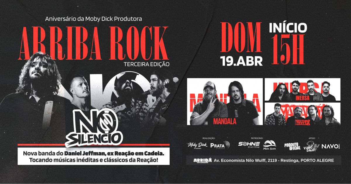 E para essa festa histórica , de um ano de nossa produtora, chamamos um elenco de tirar o fôlego: @nosilenciooficial - nova banda de @danijeffman , ex REAÇÃO EM CADEIA, cantando músicas inéditas, e clássicos da Reação Além disso, a @mandalarock2025 se reúne para um show especial - eles que foram sucesso nos anos 2000, em especial no RS, trazem todos os sucessos de sua história para essa apresentação E para completar , teremos também pela segunda vez nos eventos Moby Dick, @inersa.rock com toda sua identidade forte e músicas autorais na boca do povo da Tinga Teremos também, pela primeira vez em nossos eventos, o peso da banda @manamox_official , trazendo toda identidade grunge em suas canções