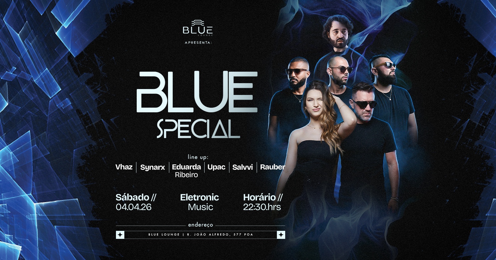 Sábado, dia 04/04, o **Blue Lounge** abre as portas para mais uma edição da **Blue Special** , uma noite feita pra quem realmente vive a pista.