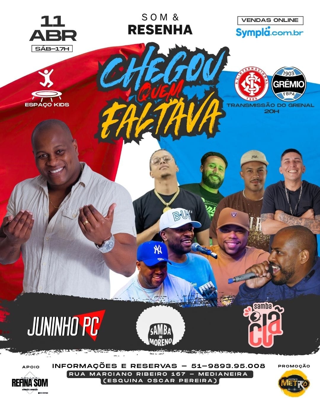 O CHEGOU QUEM FALTAVA é um evento do Samba de Moreno em parceria com a Radio Nova Metrô montou um evento dedicado a vocês que gostam do melhor do lado B e do pagode 90 e teremos um semanal com convidados em Porto Alegre.