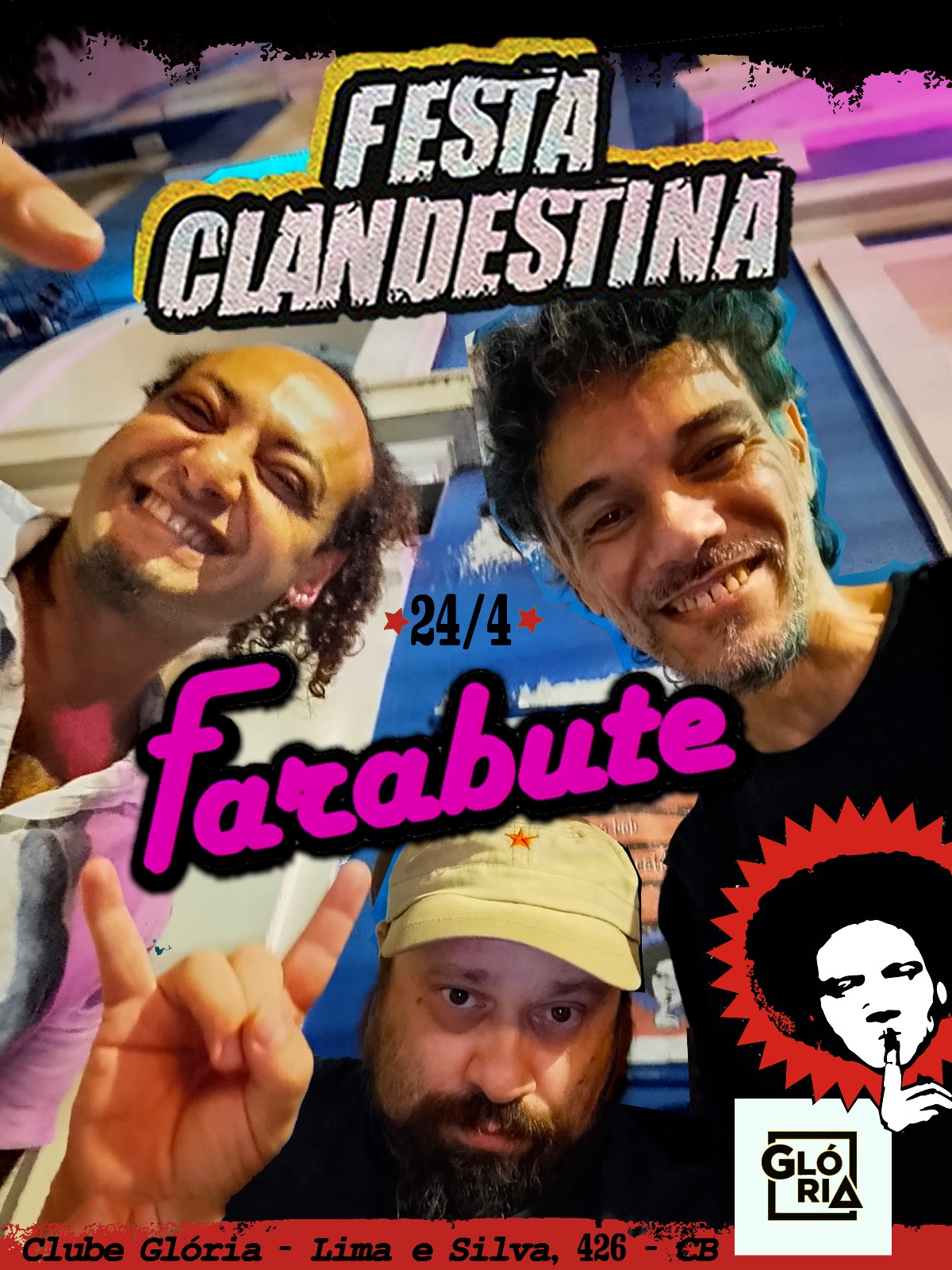Dia 24 de abril, a partir das 22h, a FESTA CLANDESTINA volta mais perigosa — e mais esperada — pra tomar conta de POA!