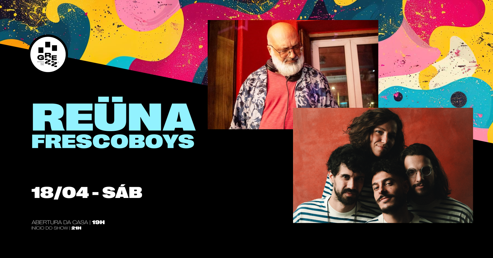 A festa REÜNA chega ao palco do GREZZ para transformar a noite em uma grande pista de dança. Com a curadoria musical do jornalista Roger Lerina, a proposta é simples e poderosa: reunir o melhor das pistas dos anos 1970 até os dias atuais em uma celebração onde música boa não tem idade e nem nacionalidade.