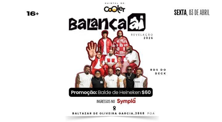 Direto de São Paulo, o grupo Balança Aí — apontado como uma das revelações do pagode para 2026 — desembarca em Porto Alegre com um som que vem ganhando destaque nas rodas de samba e também no canal do Leandro Brito, chamando atenção pela musicalidade e pela cadência que faz a galera cantar junto.