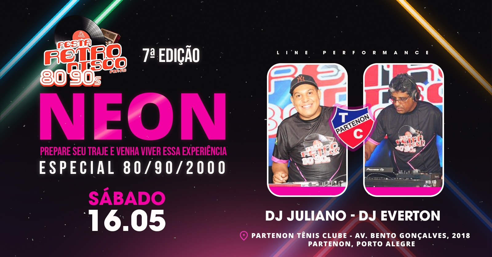Cada edição é um sucesso, e esta não será diferente: organização, qualidade e emoção reunidas em um único evento. A Noite Neon Retrodisco não é apenas uma festa, é uma experiência completa, feita para quem valoriza boa música, produção de alto nível e momentos inesquecíveis.