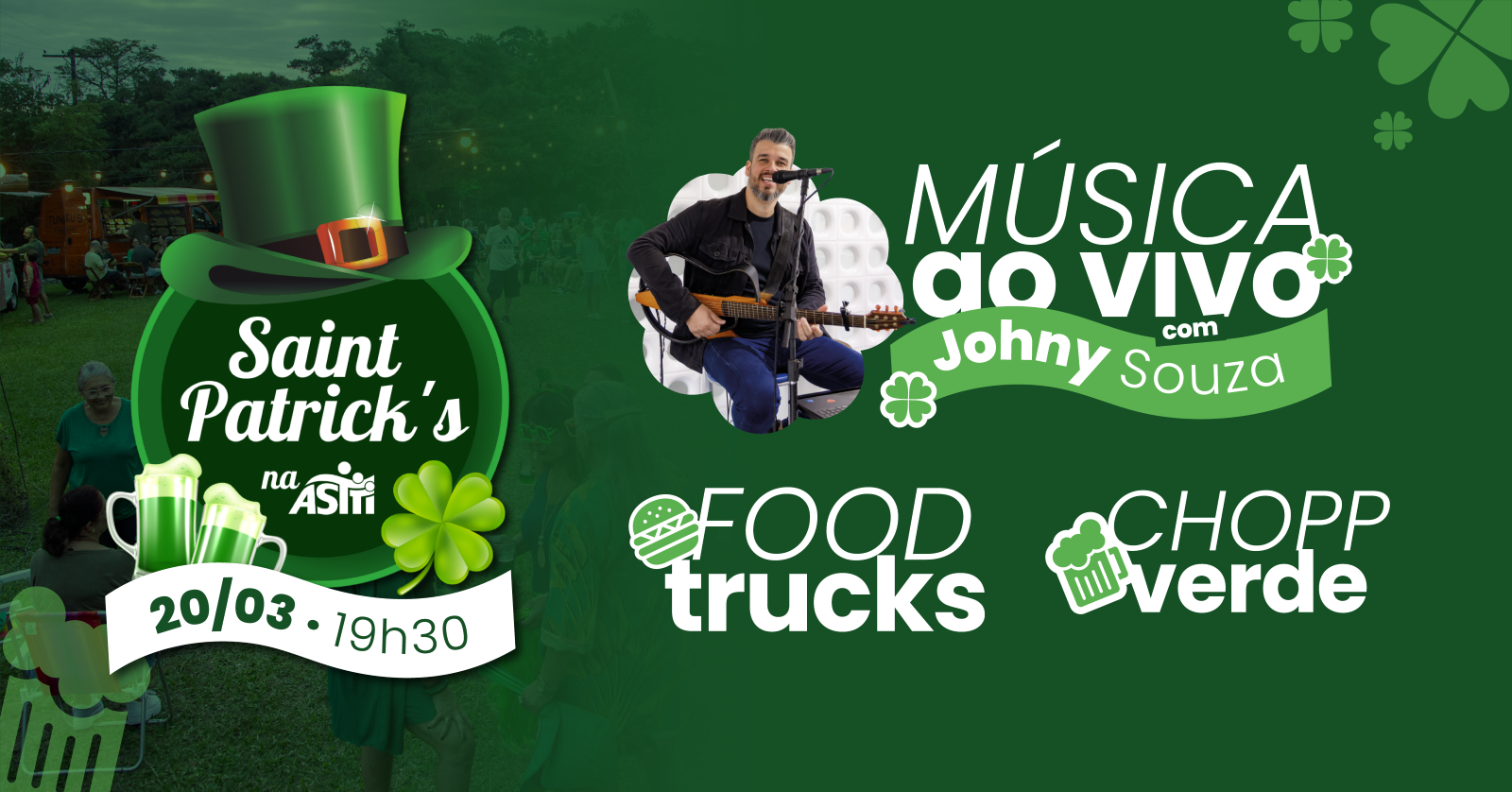 No dia 20 de março, a partir das 19h30, esperamos você para celebrar o Saint Patrick’s com: