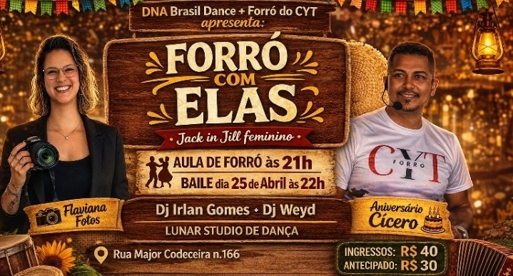 Um evento pensado especialmente para valorizar, incentivar e destacar as mulheres no forró, com muita dança, diversão e troca de experiências.