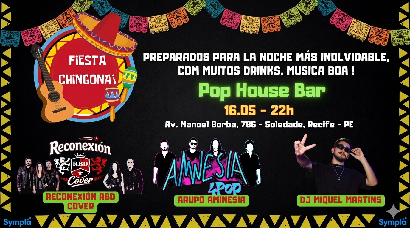 Prepare o coração e o uniforme, porque a noite mais aguardada do Pop House Bar chegou! Prepare-se para La Noche Más Inolvidable, uma imersão completa na cultura mexicana e nos hinos que marcaram gerações.