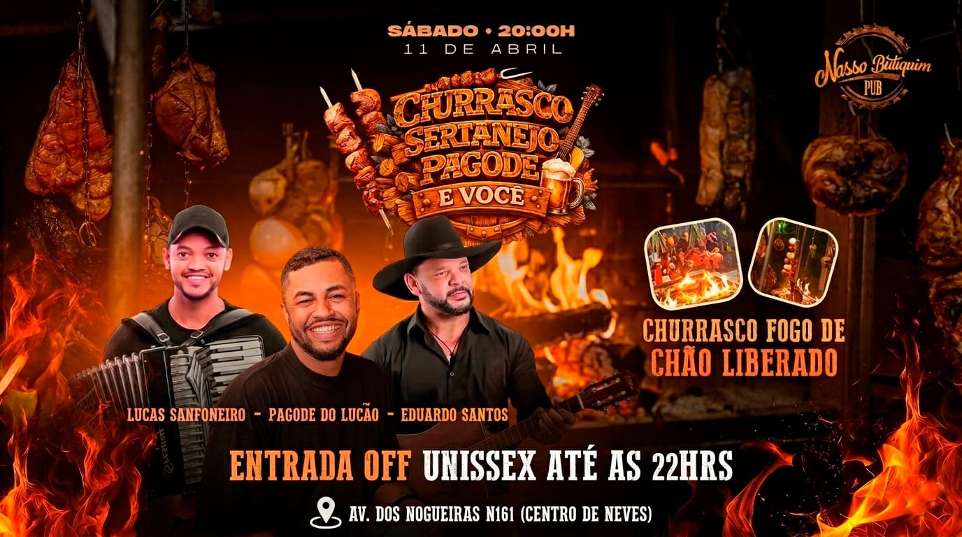 Prepare-se para uma noite inesquecível com muito churrasco, sertanejo, pagode e você!