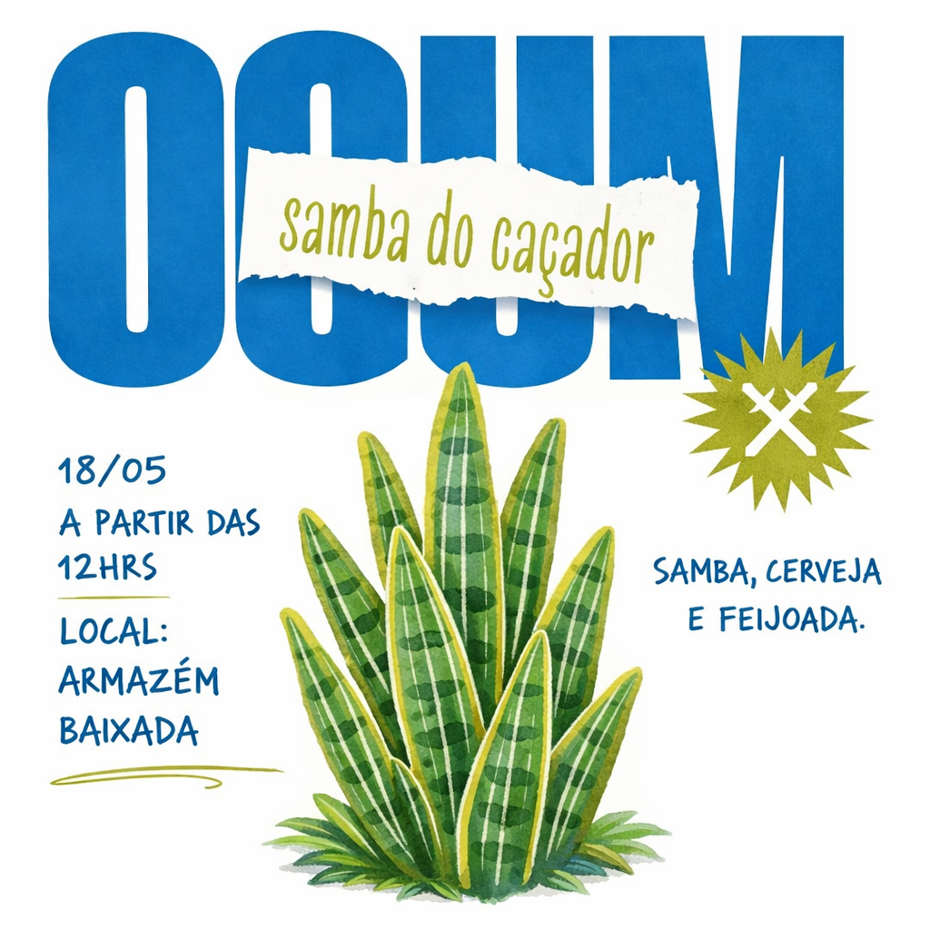No dia 17 de maio, o Samba do Caçador chega com uma edição especial em homenagem a Ogum, celebrando sua força, seus caminhos e sua proteção com muito samba, cerveja e feijoada.