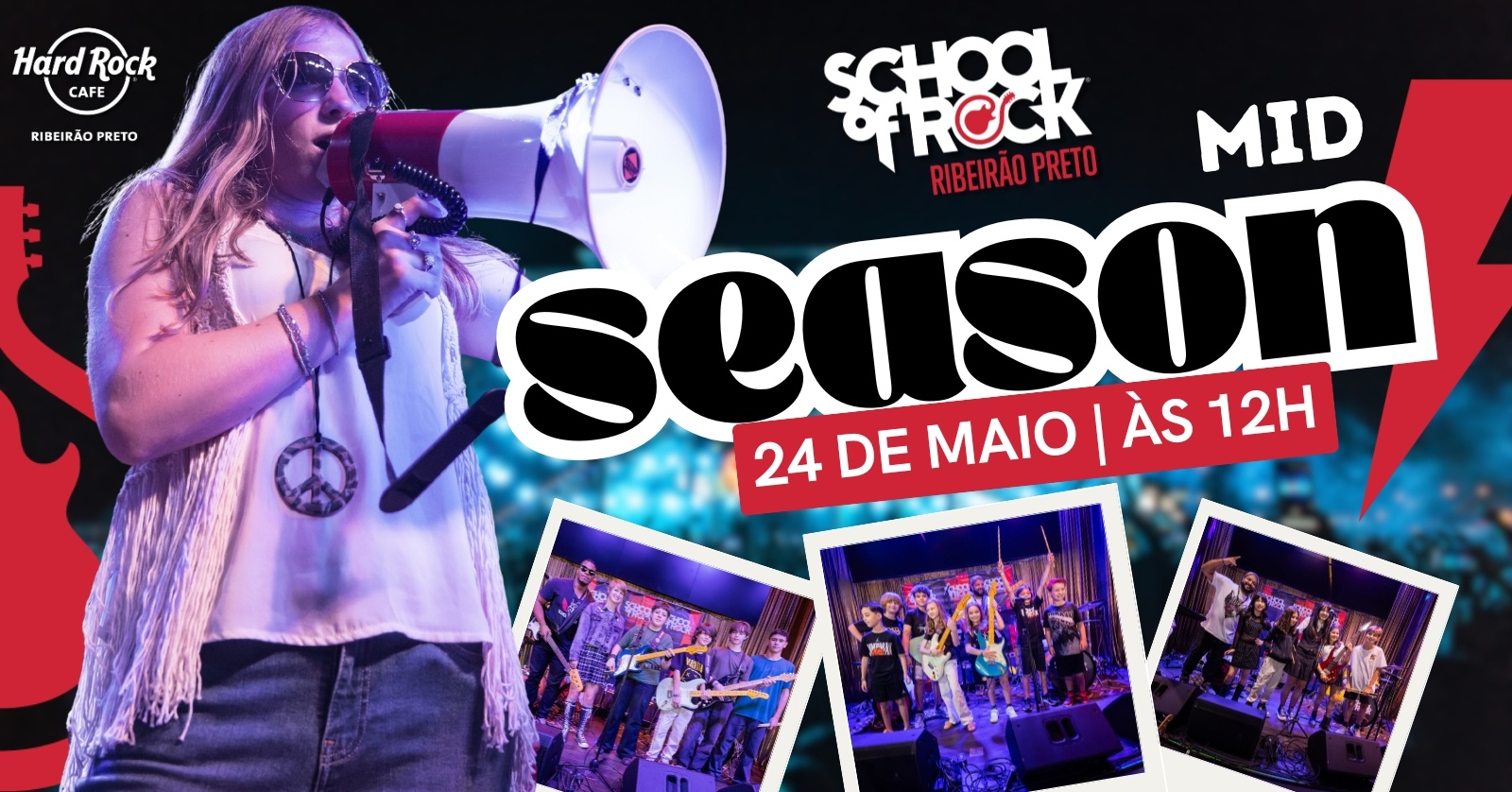 No dia 24 de maio, a partir das 12h, os músicos da School of Rock Ribeirão Preto sobem ao palco do Hard Rock Cafe Ribeirão Preto para o Mid Season, o show que marca o meio da temporada.