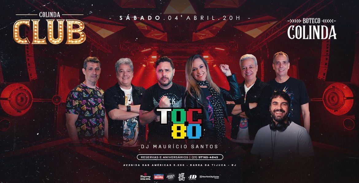 TOC 80ao vivo com um show vibrante, tocando os hits mais animados em todos os ritmos.