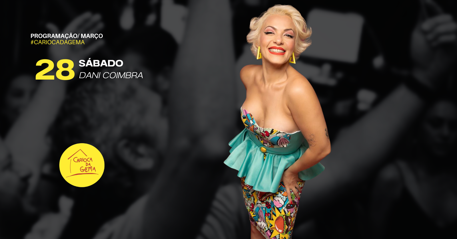 Sobre Dani Coimbra- nascida e criada no subúrbio carioca é uma artista completa. Cantora, atriz e dançarina, leva toda sua experiência artística para um show surpreendente, com mistura de ritmos, muita animação e marcante presença de palco. Seu primeiro CD solo de Renda-se" percorre desde o samba ao jazz, do pop ao xote e teve participação do cantor João Cavalcanti.Além de cantora solo, Dani Coimbra é uma das vozes do Bloco Empolga às 9.