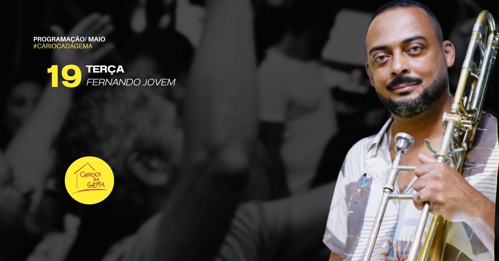 Sobre Fernando Jovem e Samba Trombonado - Fernando Jovem é músico trombonista, professor e produtor musical, apresenta O Samba Trombonado, uma roda de samba dinâmica e diferenciada pelo timbre do Trombone de vara, no repertório são tocados sambas instrumentais e sambas cantados, de todas as épocas desde Noel Rosa a Moacyr Luz e de Cartola a Zeca Pagodinho, sempre contemplando todos os estilos do Samba, do Samba de Terreiro ao Samba de Gafieira passando pelo Samba canção e o Partido alto. Com um time de primeira linha formada por: Fernando Jovem (trombone), Rafael dos Santos (cavaco e voz), Pedro Holanda(violão e voz), Rodrigo Frango (percussão e voz) e Marco Basilio (surdo). Nesta roda a animação não dá trégua!