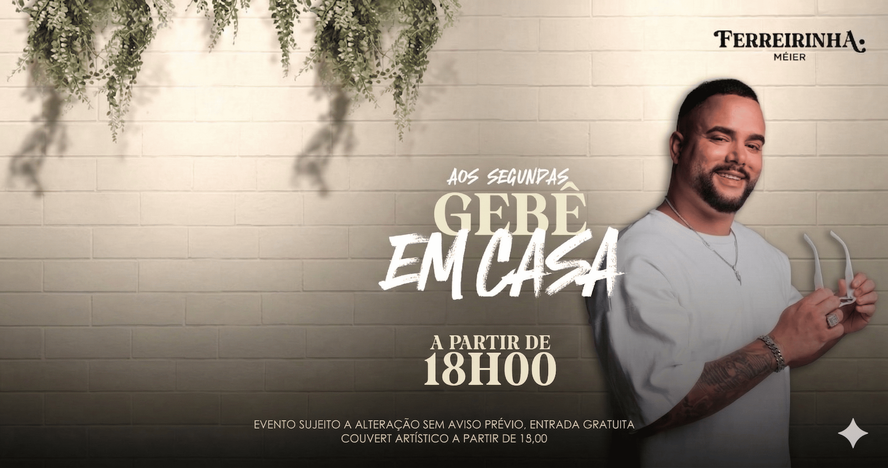 No dia 06/04 (segunda), a partir das 18h, quem comanda o som é o Pagode do Gebê em Casa, trazendo aquele repertório cheio de sucessos do pagode que todo mundo gosta de cantar junto.