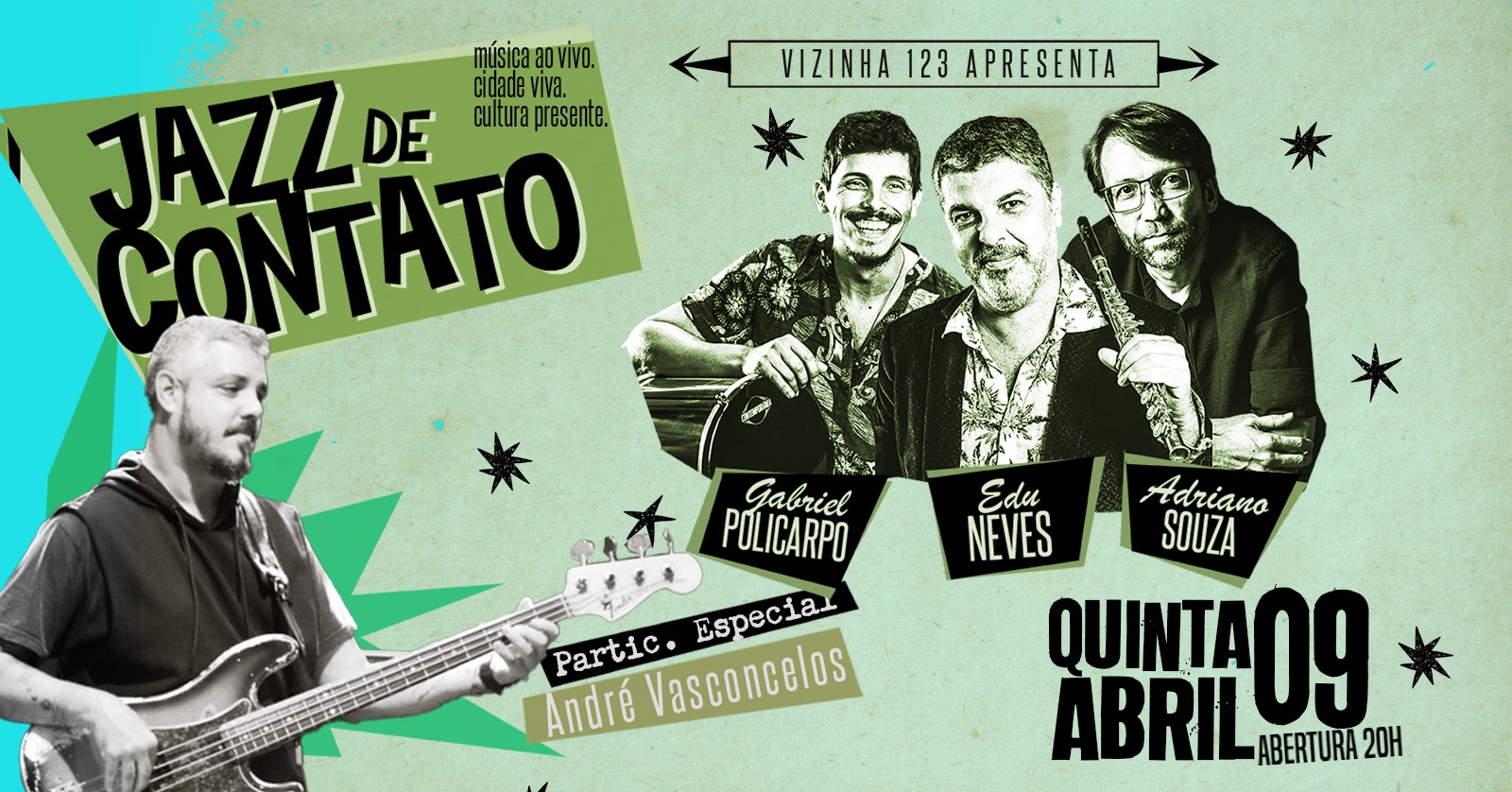 Três nomes pesadíssimos da música intrumental brasileira se uniram pra criar o Jazz de Contato. Um show, uma proposta, uma noite. Jazz pros corpos, pros pés e pra cabeça. Jazz pra ouvir e jazz pra suar. Jazz brasileiro carioca da gema, com suingue, samba, chorado e gargalhado, batido na mão e no bit. O repertório inclui músicas autorais de Eduardo Neves e pérolas da música brasileira de compositores como Tom Jobim, Paulinho da Viola, Nelson Cavaquinho, Pixinguinha, Paulo Moura e muito mais.