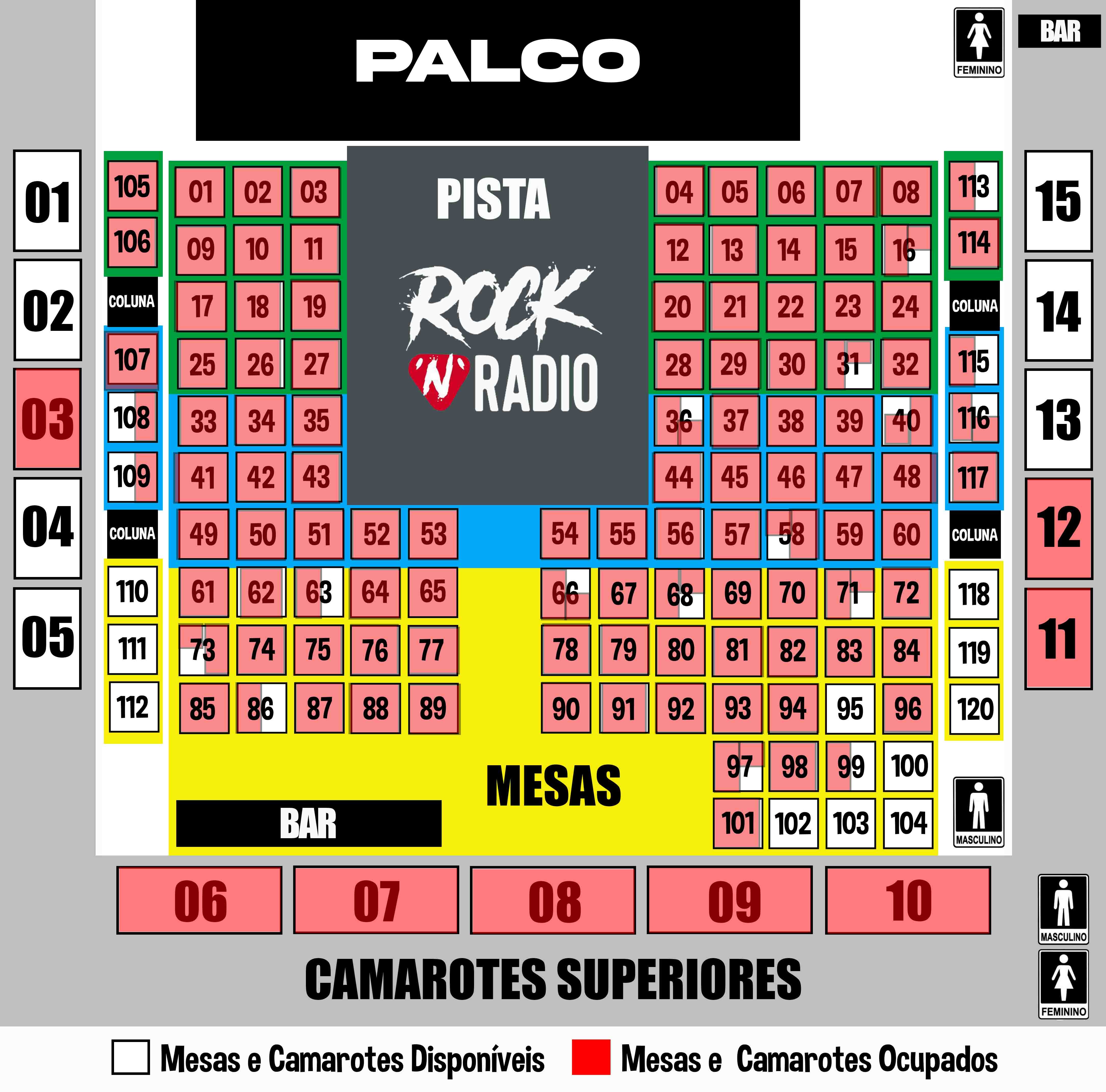 Todas as mesas possuem 4 cadeiras, cada cadeira é um ingresso individual.