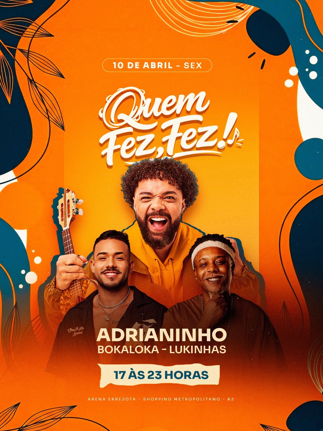 No dia 10 de abril de 2026, a Arena RJ recebe a primeira edição do Quem Fez, Fez!, um projeto que nasce com alma, verdade e história. Sob o comando de Adriano Ribeiro, cantor, compositor e multi-instrumentista com obras gravadas por grandes nomes do samba e do pagode nacional, o evento promete se tornar o ponto de encontro de quem vive e respira música de qualidade.