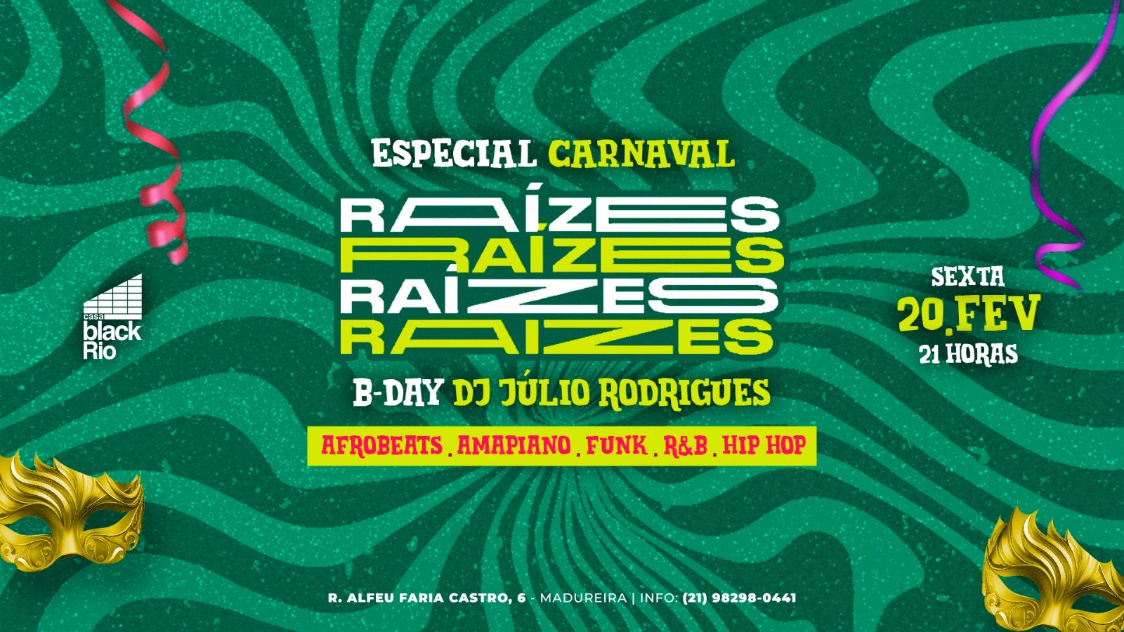 A curadoria musical e artística fica a cargo do DJ & professor Júlio Rodrigues, que promete trazer um line eclético e pesado.. o público poderá apreciar uma mistura autêntica que vão do afrobeats, afrofunk, brasilidades, reggae, amapiano, kuduro e Rap, em uma celebração que abraça influências africanas e brasileiras. A estética musical do RAÍZES reflete essa mescla única, evidenciando o poder de diálogo entre os ritmos e culturas.