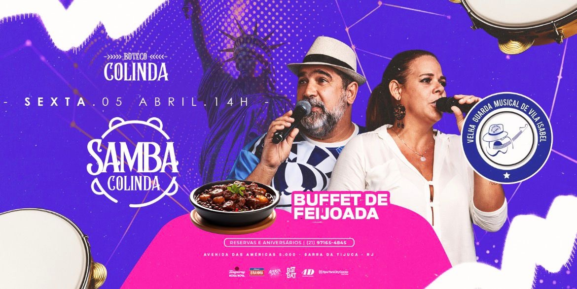 No domingo, 4 de abril, a partir das 14h, o boteco mais animado da Barra da Tijuca será palco do Samba Colinda, com o som contagiante de Velha Guarda da Vila Isabel.