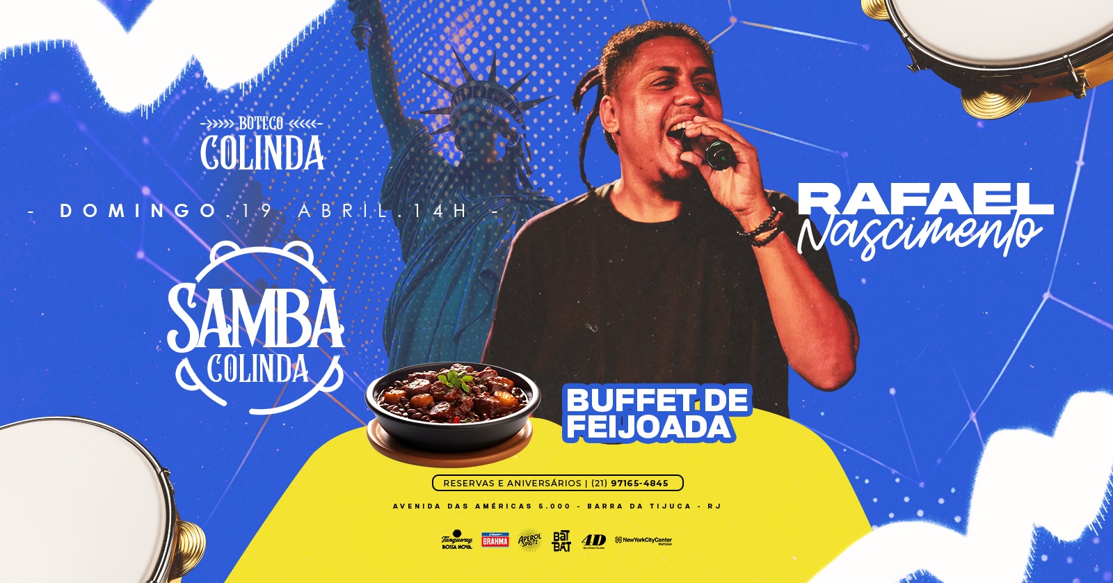 No domingo, 19 de abril, a partir das 14h, o boteco mais animado da Barra da Tijuca será palco do Samba Colinda, com o som contagiante de Rafael Nascimento.