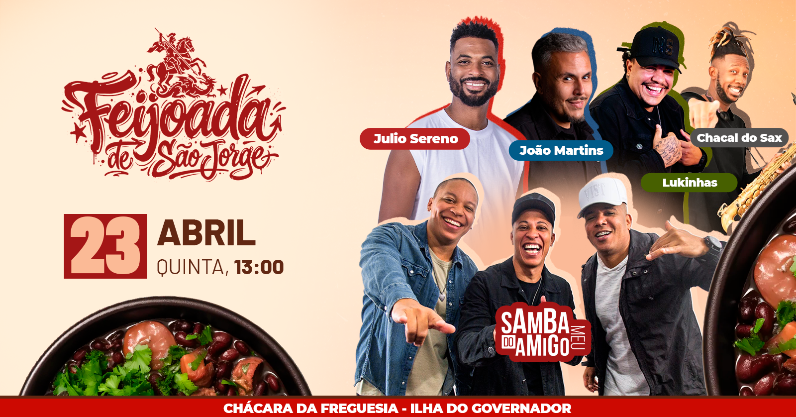 Vamos para mais uma edição da nossa tradicional Feijoada de São Jorge, na Chácara da Freguesia!! Vai ser um dia muito especial, com muito samba e queima de fogos às 18 horas em ponto.