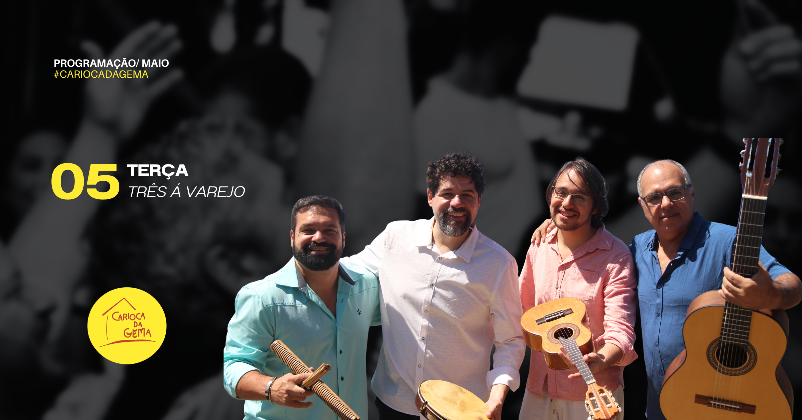 Sobre Três a Varejo - O conjunto "Três a Varejo” é uma roda de samba clássica, em seu repertório compositores como Zé Ketti, Cartola, Paulinho da Viola além claro, de compositores contemporâneos. Formado pelos músicos: Vinicius de Oliveira (Cavaco e voz), Pedro Holanda (violão e voz), Rodolpho Dutra (pandeiro) e sempre com participação de outros instrumentistas de primeira linha que vão mudando a sonoridade a casa terça. É um samba da antiga feita por jovens mostrando que o samba nunca morre! Vale a pena conferir!
