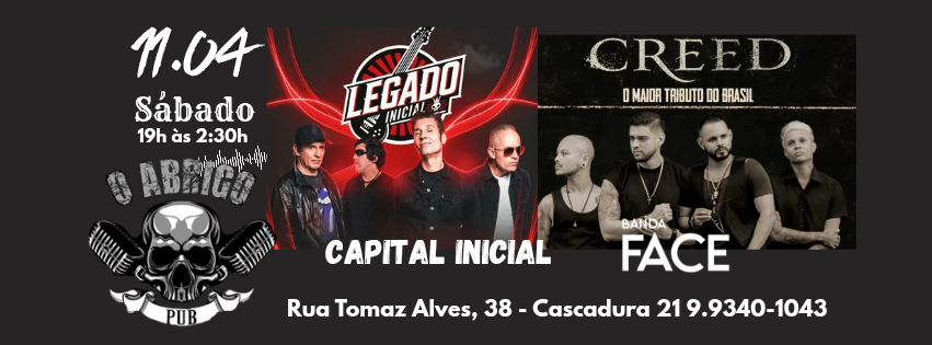 O Abrigo Pub vai receber uma das maiores bandas tributos a Creed, Banda Face + A Banda Legado Inicial, hoje a melhor banda Tributo do RJ, só vem!