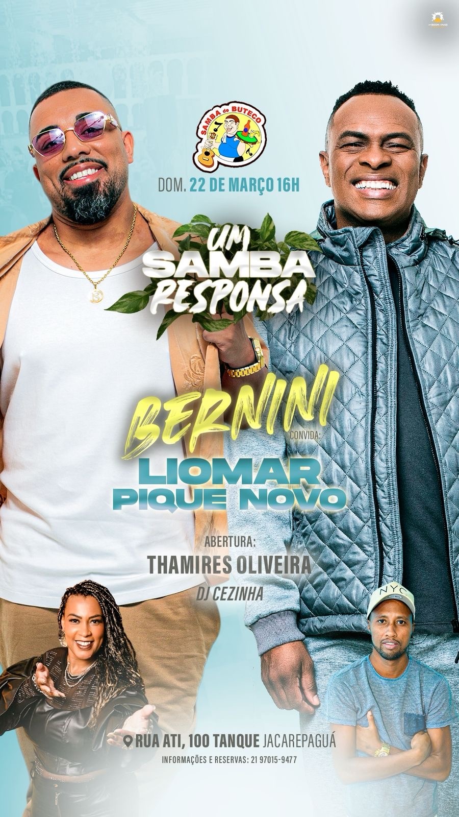 22 de Março de 2026 a partir das 16h ''UM SAMBA RESPONSA'' NO SAMBA DE BUTECO.