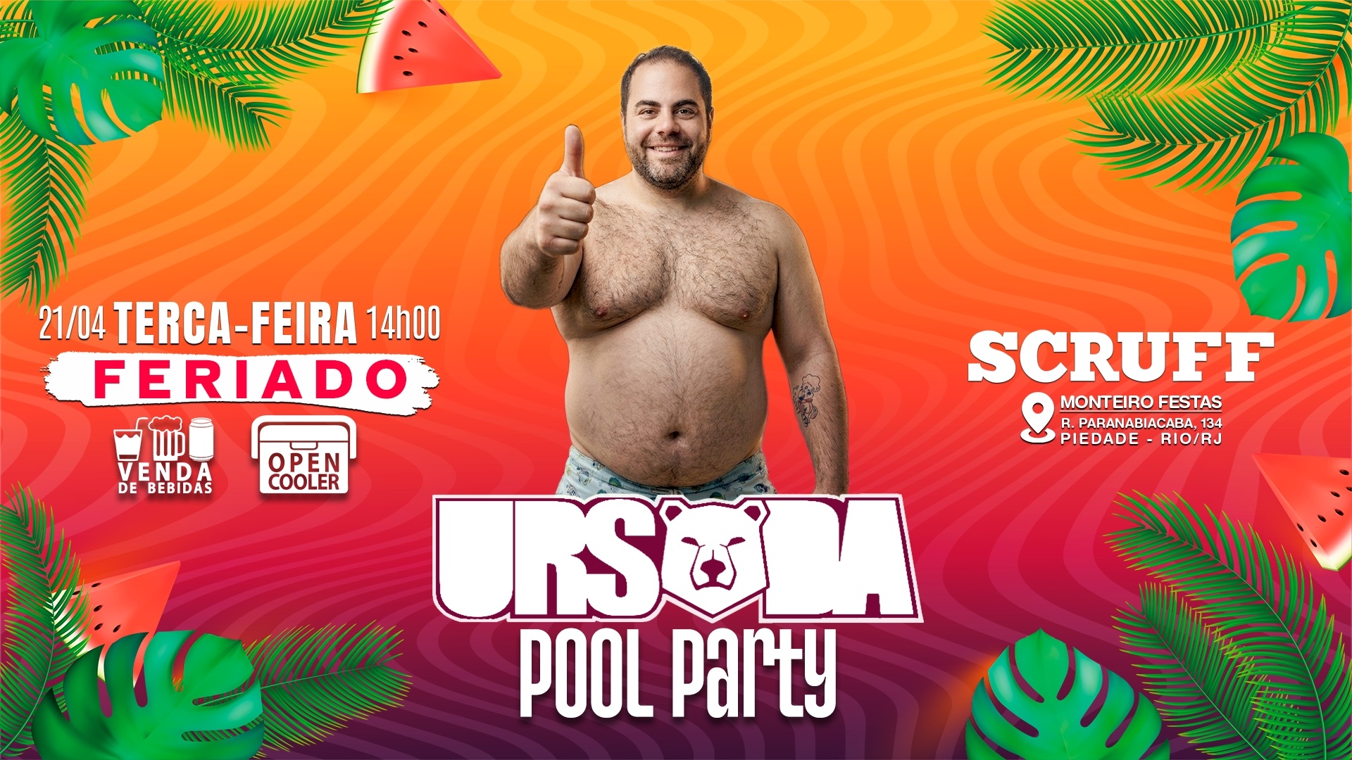 Dia 21/04, terça-feira, FERIADO, tem URSADA Pool Party no local novo (com a piscina redonda)! Das 14h às 21h!