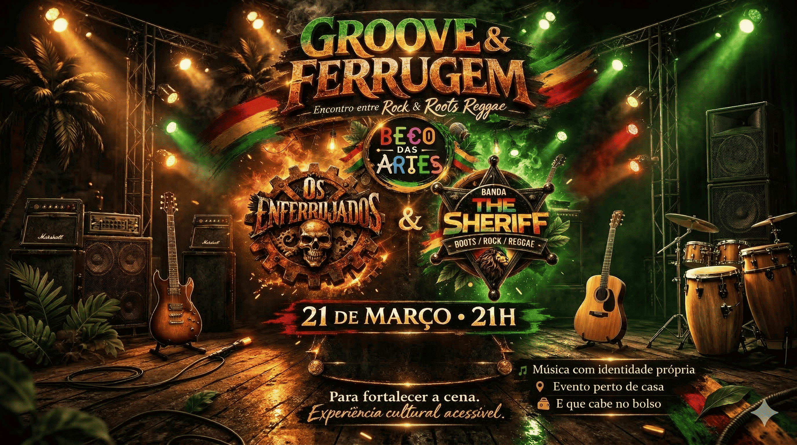 Prepare-se para uma noite onde a distorção do Rock encontra a pulsação do Reggae! O Beco das Artes abre suas portas para um encontro inédito que promete sacudir as estruturas e fortalecer a cena cultural independente.
