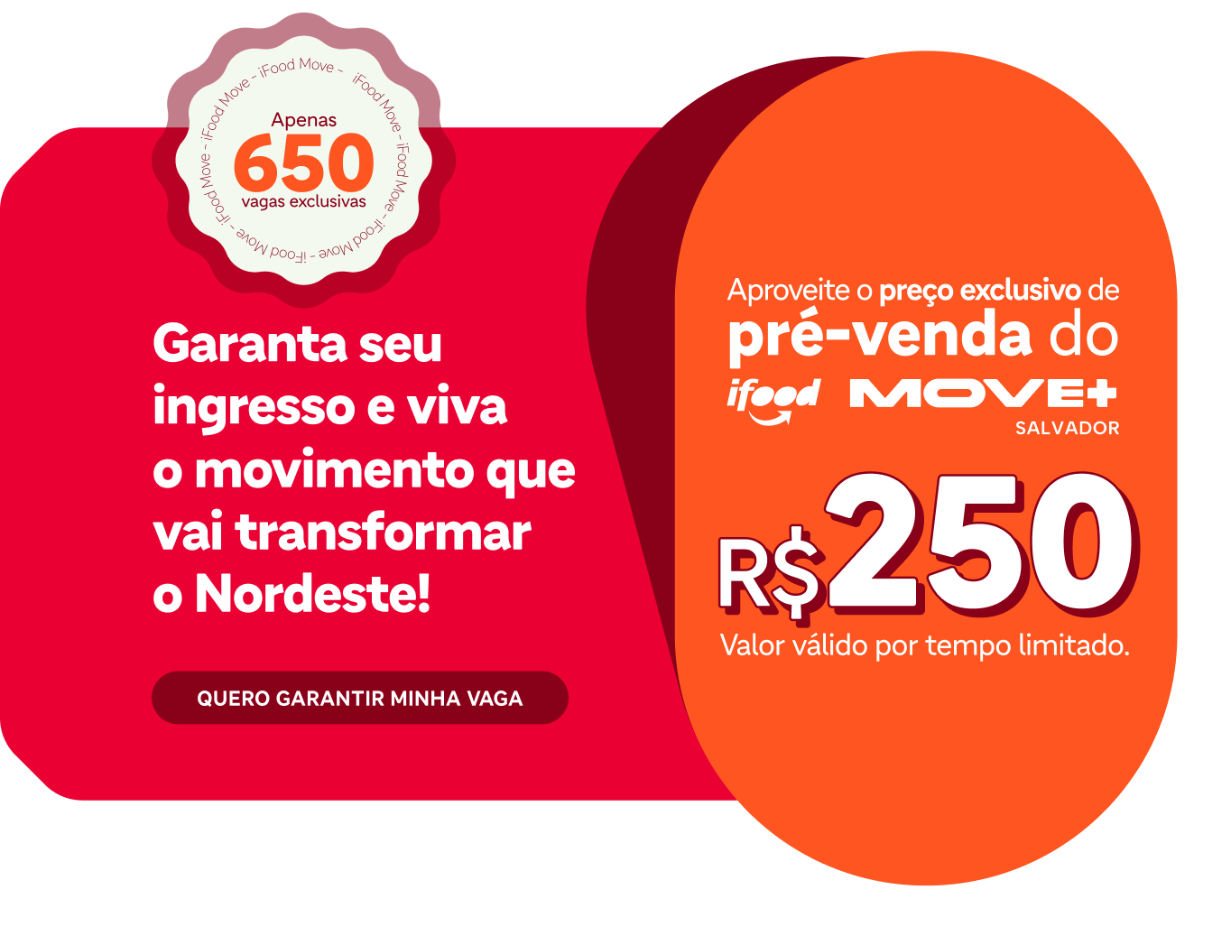**2. Qual a diferença entre o iFood Move e o iFood Move+ Salvador?**iFood Move: encontro nacional, de visão ampla, que projeta o futuro do setor em escala Brasil. A 3ª edição acontece em 16 e 17 de setembro em São Paulo.