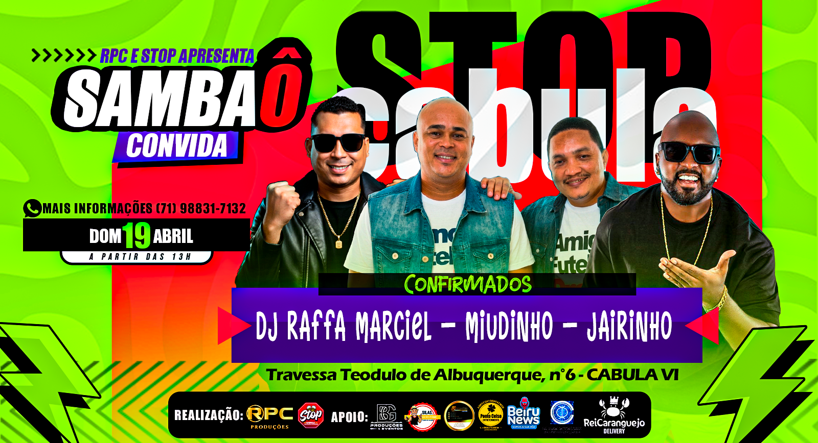No dia 19 de abril de 2026a partir das 13h. o Stop Cabula (Cabula VI) vai ferver com uma das rodas mais esperadas do momento!