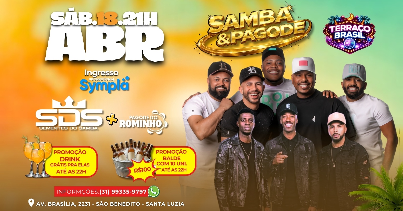 SAMBA CLUB FESTIVAL O evento que vai marcar o calendário do samba e pagode em BH! Prepare-se para viver uma experiência única com 10 horas de festa, reunindo grandes nomes nacionais e a energia contagiante das melhores bandas da cidade. Data: 20 de junho Abertura dos portões: 18h Local: Arena Gran Hall ⸻ ATRAÇÕES Shows Principais: • Tá Na Mente • Farias • Pique Novo • Príncipe Shows de Abertura: • Bandas de BH trazendo o melhor do samba e pagode ⸻ SETORES Área VIP Acesso privilegiado com excelente visão do palco Camarote Open Bar Curta \10 horas de open bar\ (Cerveja, Vodka, Gin, Drinks Prontos, Refri e Água) com muito conforto e exclusividade Lounges Espaço reservado com a melhor vista dos shows, ideal para grupos e experiências premium Reservas de Lounges: 31-999308426 ⸻ INÍCIO DAS VENDAS – PRÉ LOTE 08 de abril às 18h Informações: 31-993744300 Garanta seu ingresso antecipadamente e não fique de fora desse evento histórico! Samba, pagode, gente bonita e uma energia que só o Samba Club Festival pode entregar.