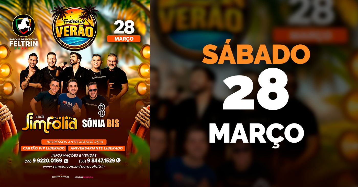 Prepare-se para uma noite incrível! O Parque de Eventos Feltrin apresenta o Festival de Verão, com o melhor do pagode e samba para agitar o seu sábado!