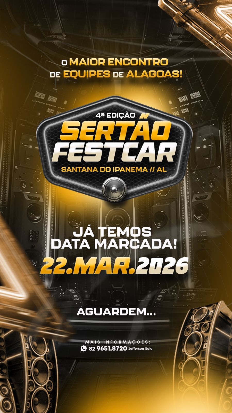 Vem aí A 4ª Edição Sertão Fest Car 2026 - SANTANA DO IPANEMA. O Maior encontro de todos os tempos, com várias atrações, com direito à pulseira na entrada.