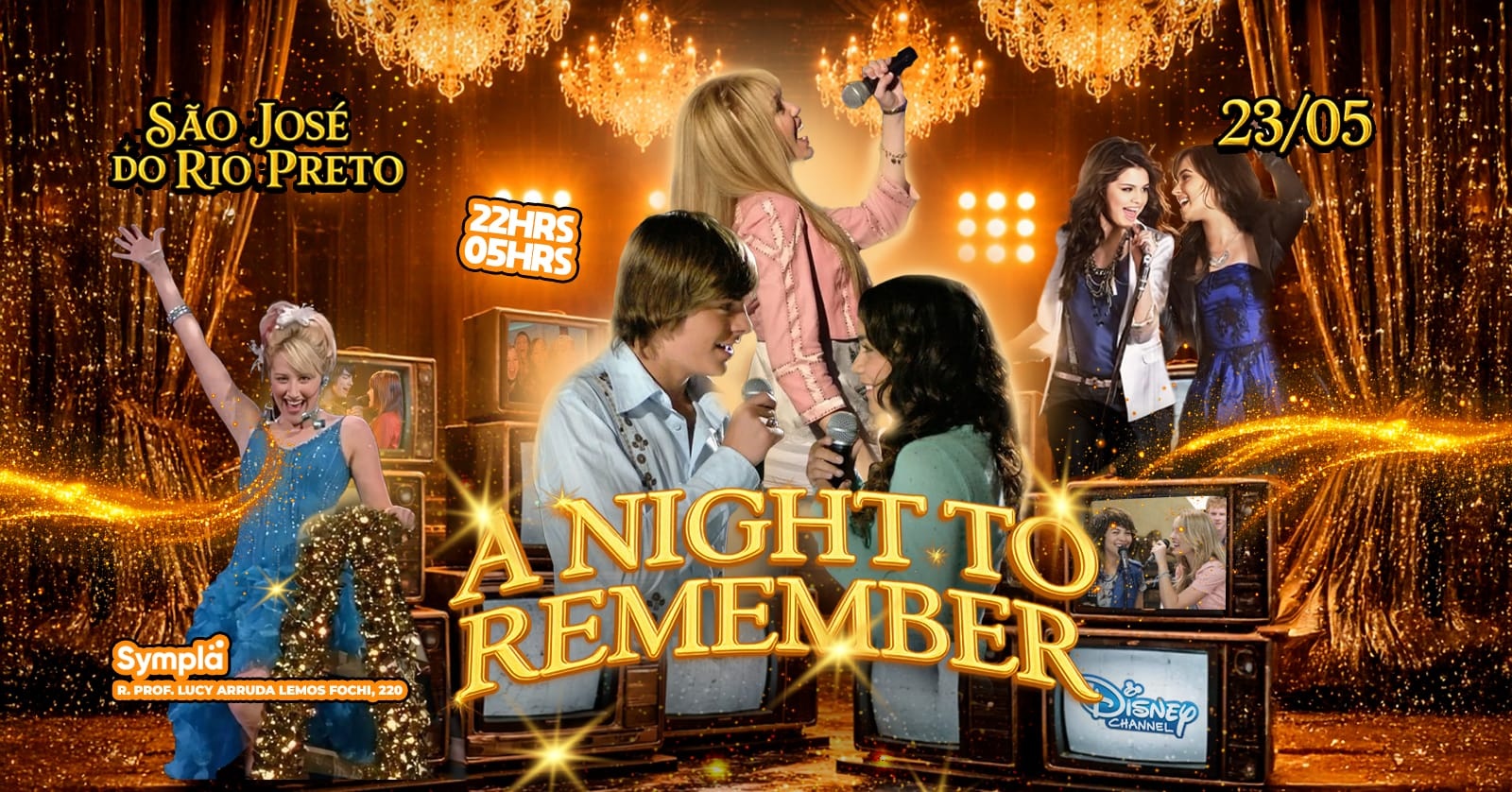 E é claro, ao som dos maiores hits dos anos 2000/2010: High School Musical, Hannah Montana, Camp Rock, The Cheetah Girls, Jonas Brothers, Miley Cyrus, Demi Lovato, Selena Gomez, Teen Beach Movie, Lemonade Mouth, Vanessa Hudgens, Ashley Tisdale entre outros… Além de aberturas das séries e trilhas sonoras de filmes que marcaram a nossa geração…