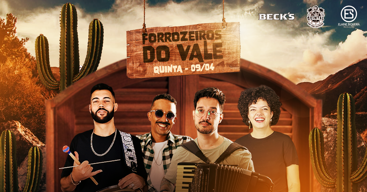 O Quintal vai ferver com o Forrozeiros do Vale – um projeto que reúne os melhores forrozeiros da região para tocar aquele forró raiz e animado que não deixa ninguém parado.