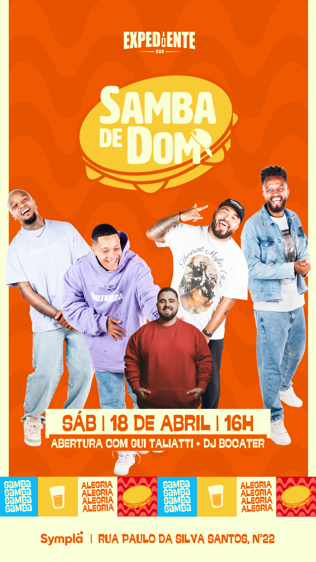 Dia 18/04, a vibe vai ser daquele jeito que a gente gosta: energia lá em cima, cerveja gelada e muito samba no pé!