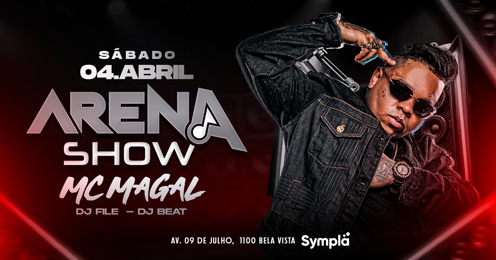 No sábado, 04 de abril, a Arena Show vai tremer com um dos nomes mais brabos do momento: MC Magal, trazendo os hits que estão dominando as pistas e fazendo todo mundo descer até o chão!