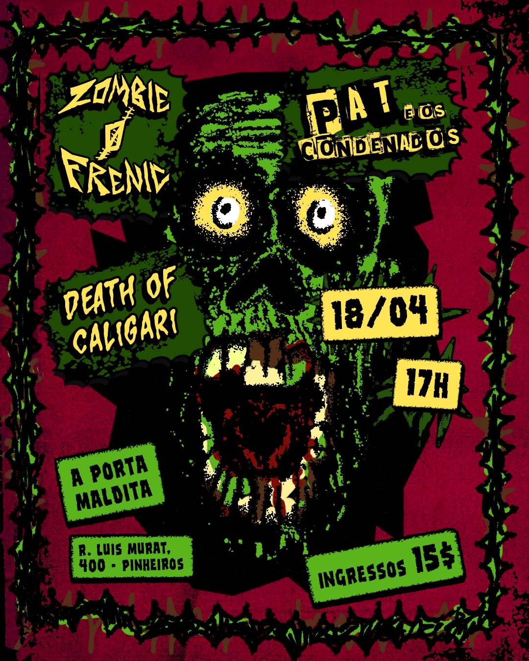 A PORTA MALDITA apresenta: ZOMBIE O FRENIC + DEATH OF CALIGARI + PAT E OS CONDENADOS