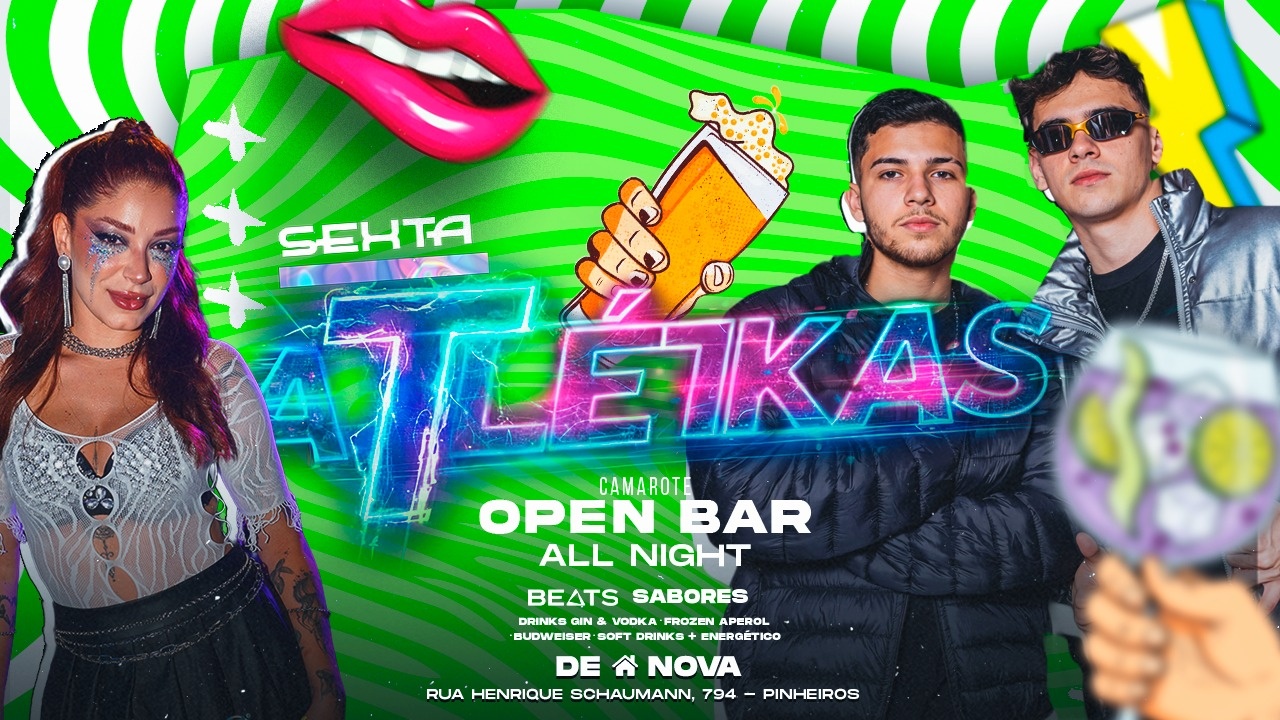 ATLETIKAS OPEN BAR - Com o primeiro Rolê full open bar - o Open Bar será na casa toda , incluso Beats noite toda + os drinks já de costume
