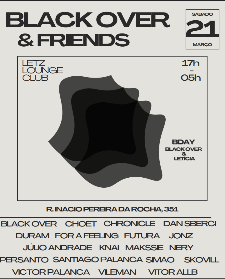 No sábado, 21 de março, a Letz Lounge Club, no coração da Vila Madalena, recebe uma edição especial da BLACK OVER & FRIENDS.