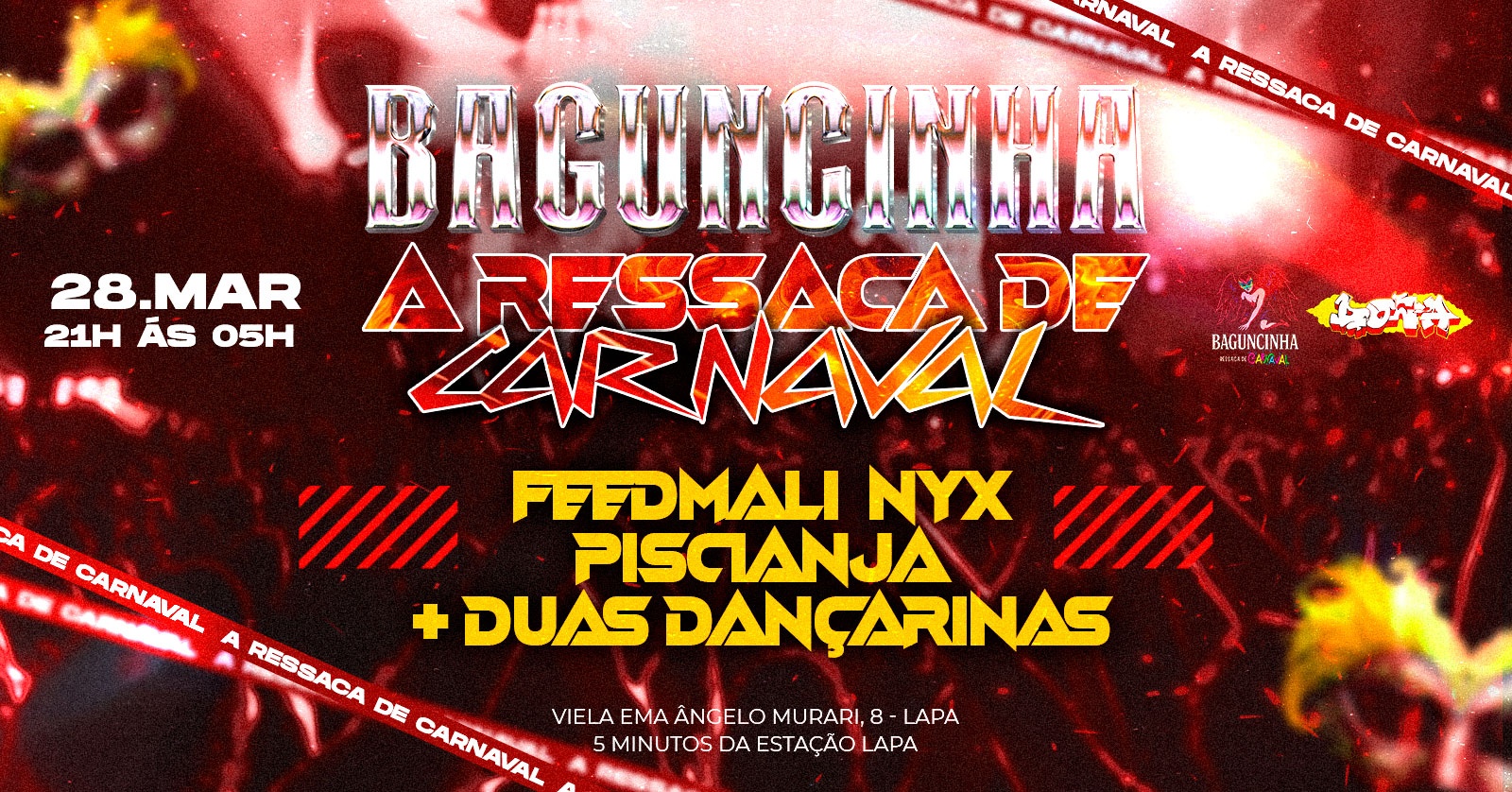 Feedmali, DJ Piscianja e NYX assumem o controle da pista com set pensado pra escalar. Nada linear. Nada previsível. É construção de clima, é pressão crescente, é momento de explosão.