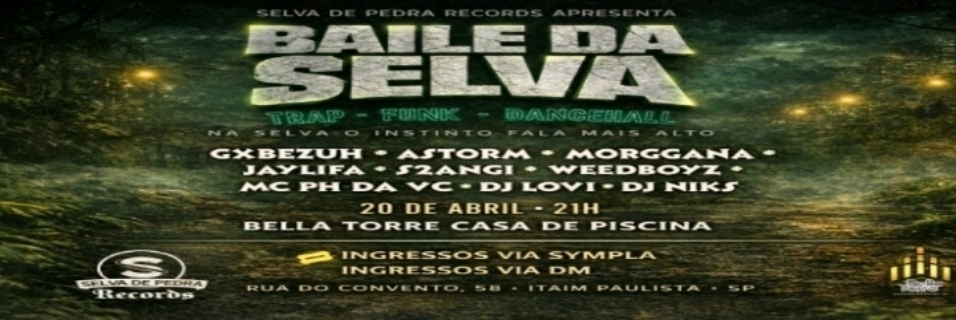 O BAILE DA SELVA chega trazendo uma experiência única, onde o peso do trap, a energia do funk e o calor do reggaeton se encontram em uma noite intensa, quente e fora do padrão.