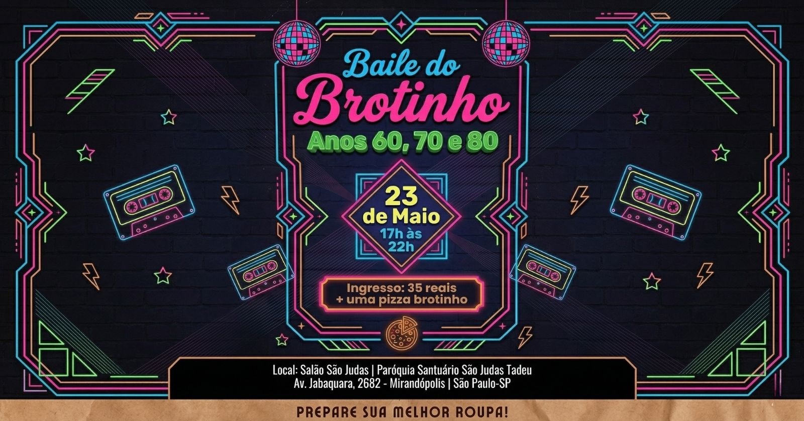 Prepare-se para uma viagem no tempo com o Ministério de Artes Vivarte! Convidamos você para o Baile do Brotinho, uma noite dançante inesquecível ao som dos maiores sucessos dos anos 60, 70 e 80!