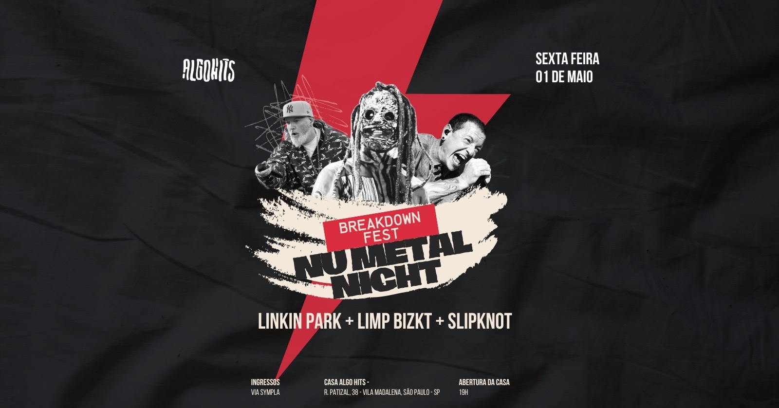 Prepare os joelhos para o mosh, porque a nostalgia vai bater com o peso das guitarras! O Breakdown Fest retorna em uma edição especial para transformar a AlgoHits no epicentro do Nu Metal.