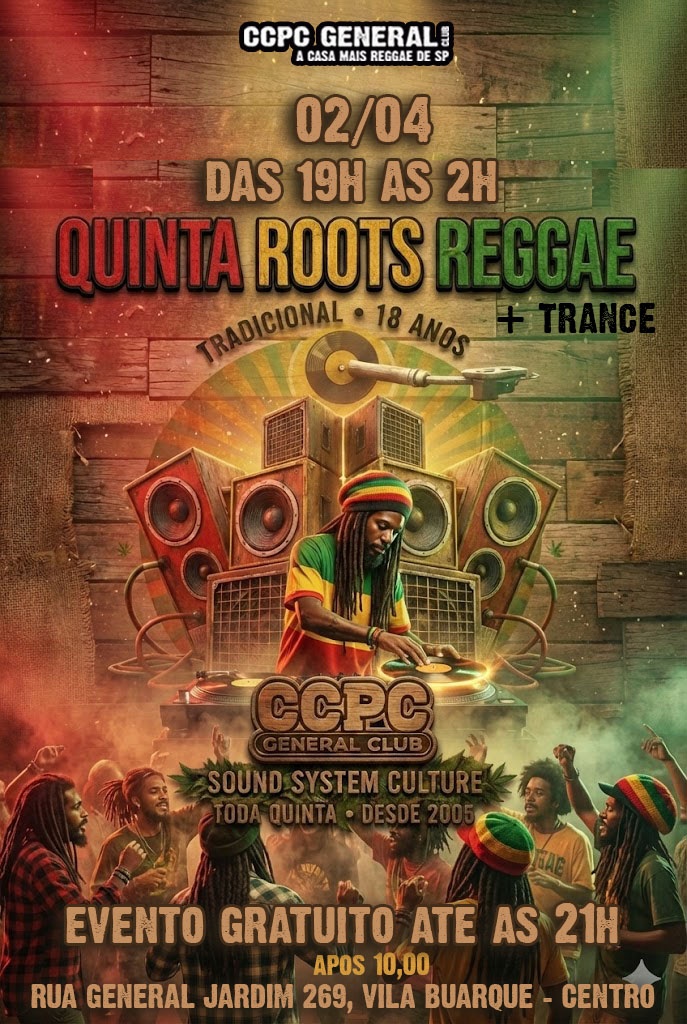 QUINTA FEIRA TEM A TRADICIONAL FESTA ROOTS REGGAE apresentado 100% VINIL nas caixas SOUND SYSTEM.