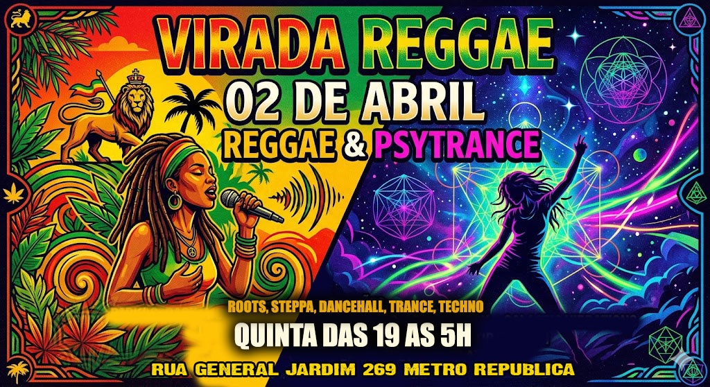 QUINTA FEIRA 02/04 VESPERA DE FERIADO TEM A TRADICIONAL FESTA VIRADA REGGAE E TRANCE!