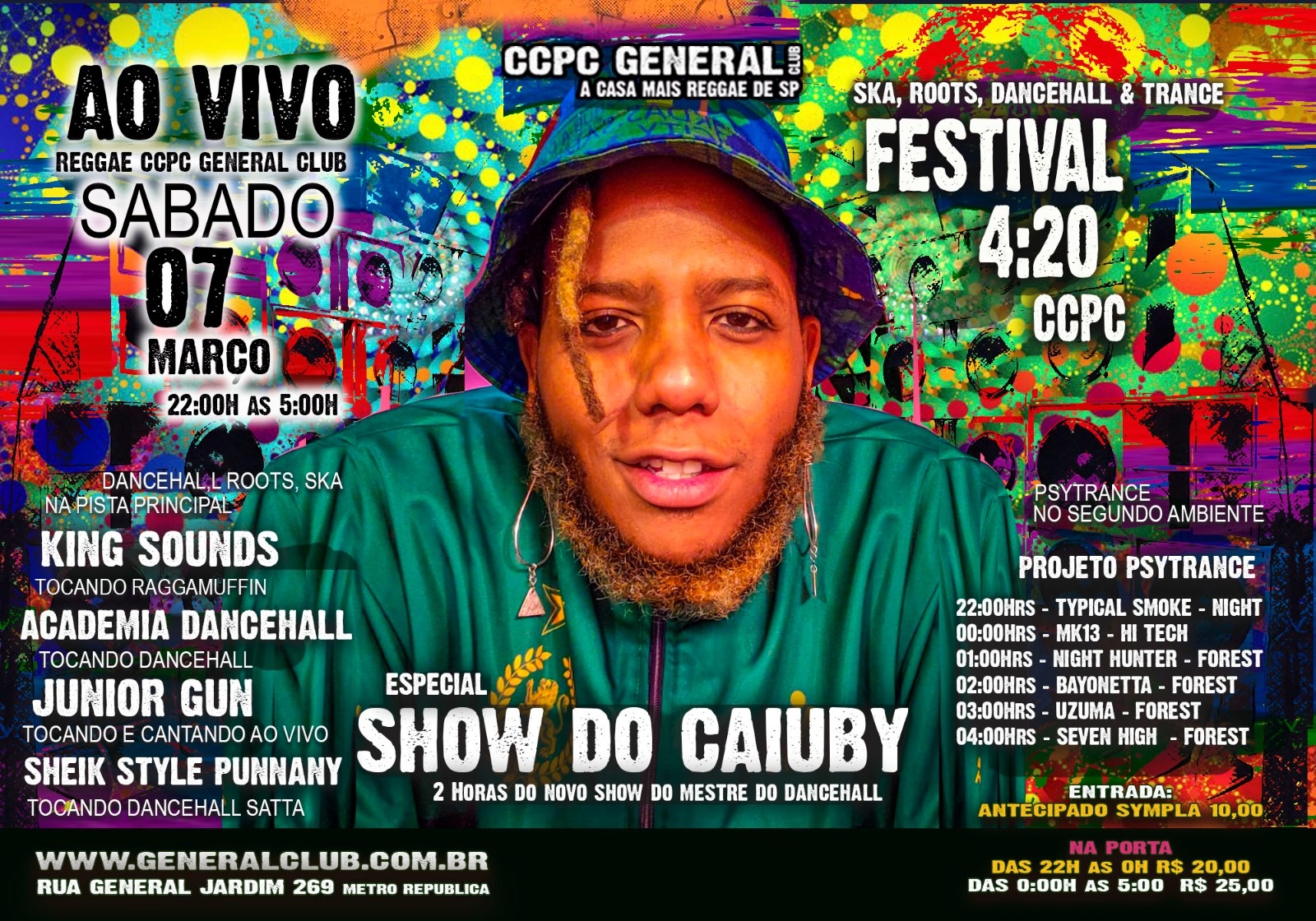 SABADO DIA 07 DE MARÇO o CCPC GENERAL CLUB apresenta CAIUBY, o MESTRE DO DANCEHALL ao vivo.