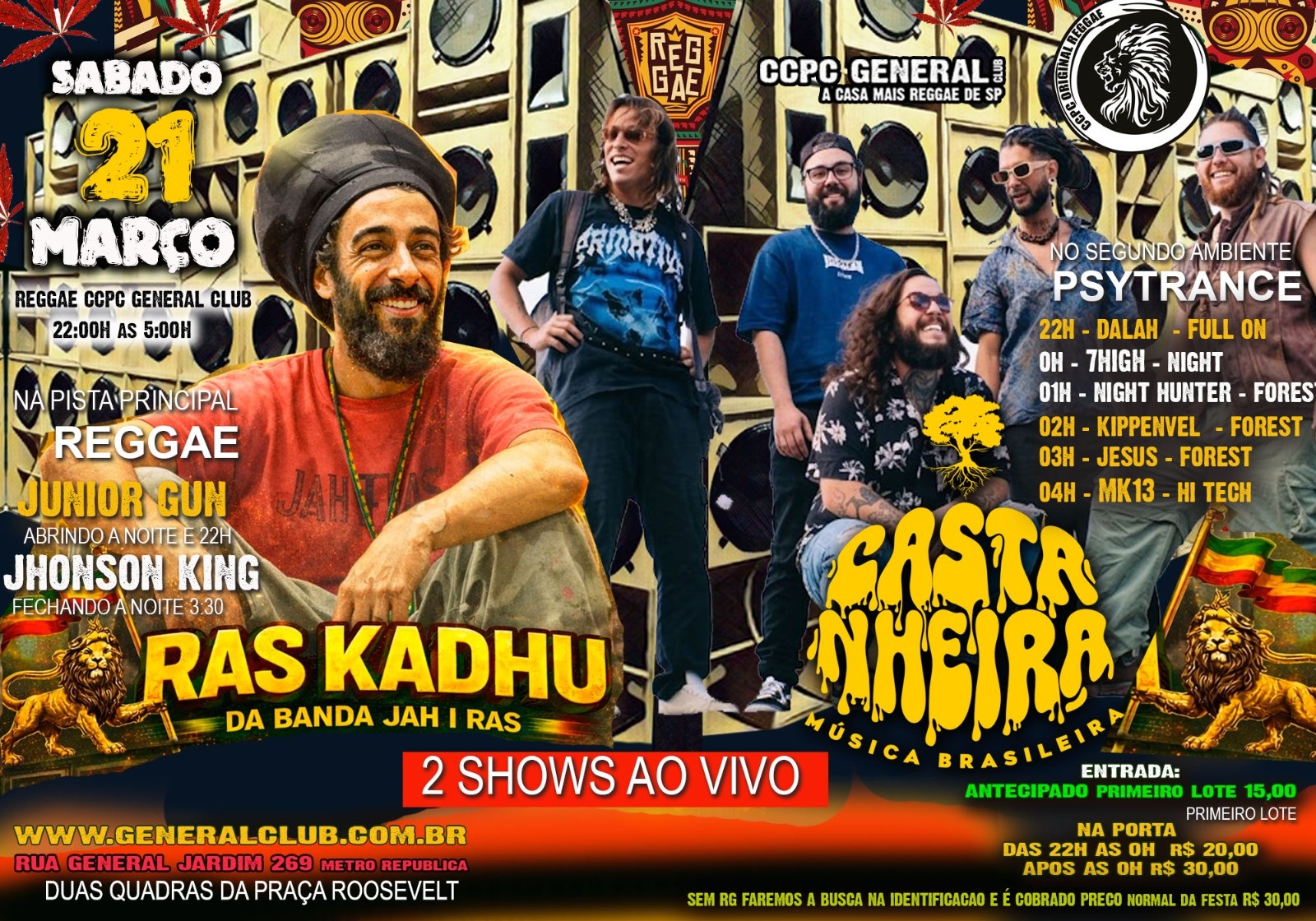 SABADO DIA 21 DE MARÇO o CCPC GENERAL CLUB apresenta DUAS BANDAS AO VIVO, RAS KADU E BANDA CASTANHEIRA